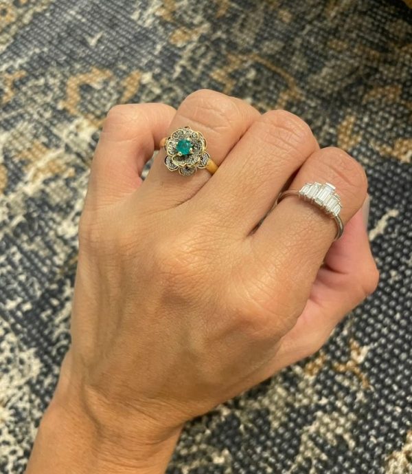 Anillo en Oro 18 K con esmeralda y flor en filigrana